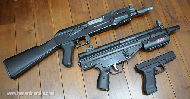 レンタルガンはマルイのβスペツナヅ、G3 SAS、グロック18Cの電動ガンがある。