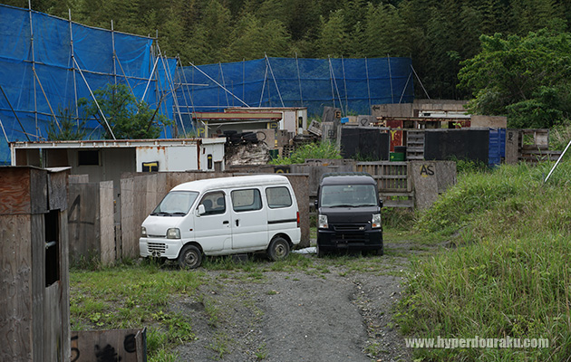 Aフラッグ前にあるZコンテナ。積み上げられたプラパレットを階段にして屋上へ上ることができる。