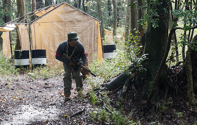 森林フィールドは小雨程度なら木々がある程度雨を防いでくれるので普通にサバゲーできる。