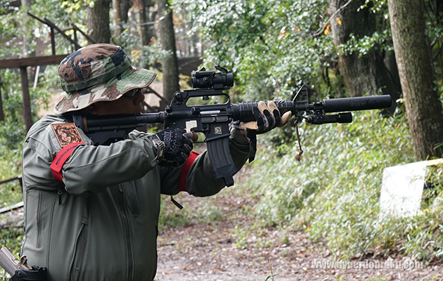 この日は雨ということもあって、電動ガンよりもエアコッキングのショットガンを使うプレーヤーがとても多かった。マルイやCYMAのM3系、マルゼン CA870といったメーカーのショットガンが人気!!