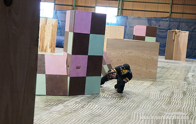 このスネークサイドを上手く進行できるかが攻略のカギとなる。ペイントボールで使われるこのバリケタイプはペイントボールプレーヤーでもある竹田オーナーのアイデア。