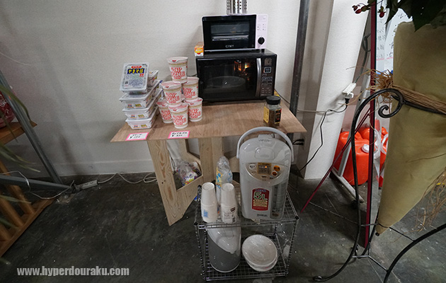 セフティには電子レンジ、電気ポット完備。カップ麺の販売もある。