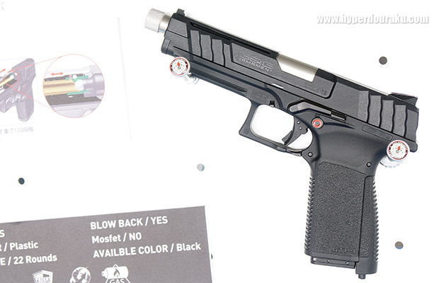 ショットショー2018で展示されていたG&Gオリジナルのガスブローバックハンドガン、GTP 9も展示。装弾数は22発。