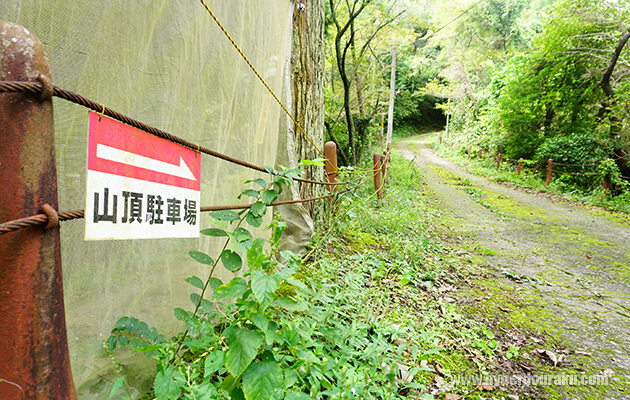 山道を山頂に向かって上がっていくと、2つある駐車場の一つの有料駐車場が見えてくる。