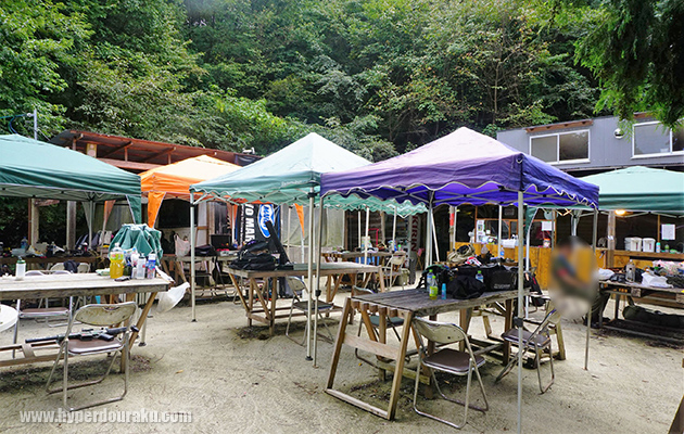 セーフティエリアでは日差しが強かったり、雨が降った際にはタープテントを展開することもできる。