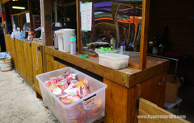 他設備はポットや電子レンジ、自動販売機もあり、物販にはカップ麺や電池、ガスやBB弾も取り扱っている。