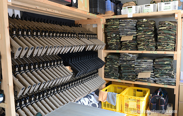 レンタルガンとウェアは100名分を用意。凄い数だ。