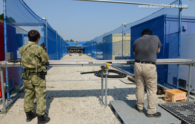 受付事務所横のシューティングレンジ。各フィールドで共有する施設となる。