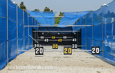 距離は50mと十分な距離。これ以外にも各フィールド内にも50mクラスの距離看板が設置してあるのでホップ調整などの目安となる。