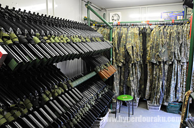 本部の機材貸し出し倉庫は、さながら武器庫。1個中隊分くらい貸し出せそうな凄い量の電動ガンがズラリと並ぶ。