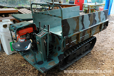 CFフィールドのセフティゾーンまでは上り坂でちょっと遠いのだが、写真のような運搬車「キャピタル号」でスタッフが荷物を運んでくれるサービスもある。