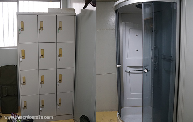 貴重品ロッカーやシャワールームも完備。