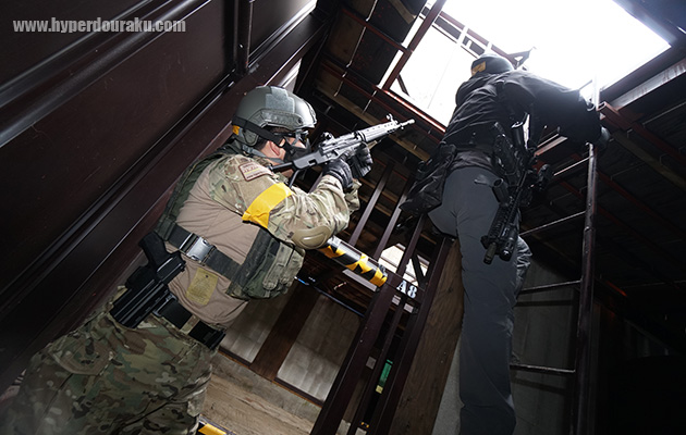 階段の攻略はとても難しく、CQB訓練でも重要な項目なのだそう。階段の裏に潜む敵をいかに倒すか、そんな際どい攻防もT-MOUTならば体験できる。