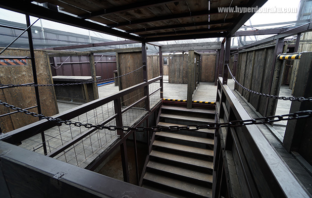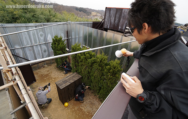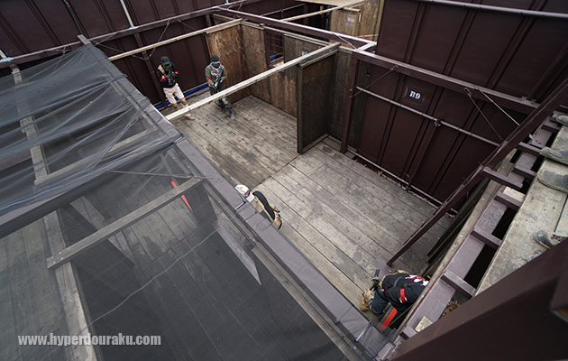 中庭をキャットウォークから見下ろすフィールドマスター。中庭はちょうどフィールドの中央部に位置し、この位置で拠点防御するというゲームも行っていた。全方位を敵に囲まれて戦うのは非常に緊張感がある。