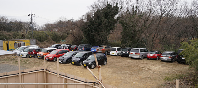 駐車場は30台分。起伏があるので、車高の低い車は気を付けよう。
