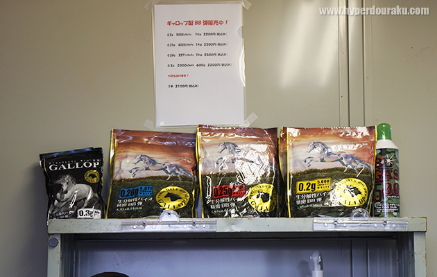 BB弾やガスなどの消耗品の販売あり。昼食は唐揚げ弁当を別途注文出来た。レンタル装備は準備中とのことだ。