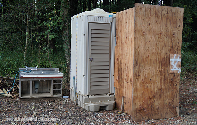 トイレは仮設だったが、今後水洗洋式のトイレを設置するとのことだった。トイレ横に手洗い場あり。