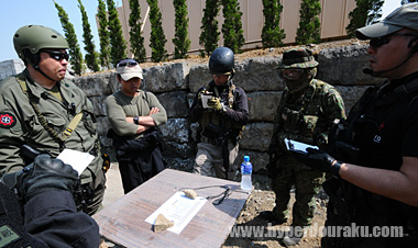 この日は午前中射撃訓練を行い、昼食を取り、午後から想定訓練を3回おこなった。サバイバルゲームのローテーションと違って、ブリーフィングやAARなど、考える時間が多く取られている。そこで、自分やチームの行動を振り返り次のミッションに生かしていくという感じだ。