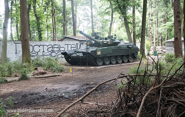 この戦車1/1スケールの実物大で再現されており、公式にはモデル名は明かされていないが、ソ連のT-90Aをモデルアップしたもの。