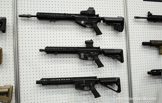 BOLT AIRSOFTのベーシックなB4シリーズに加え、ナイツ刻印のSR-25、AKのマガジンを使用するSR-47シリーズなども展示されていた。