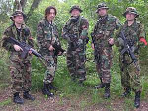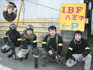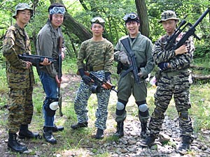 真冬にもかかわらず、お揃いのウッドランドカモでメンバー勢揃い。「ストレートフラッシュ」と口々に叫んでいるが、当時のチーム名。その後、「バーバリアンフォース」と言う凝った名前にしたが、とっさにチーム名を忘れること多々アリで、現在の「ハイパー道楽」でもういいじゃん、とズルズルと変更。