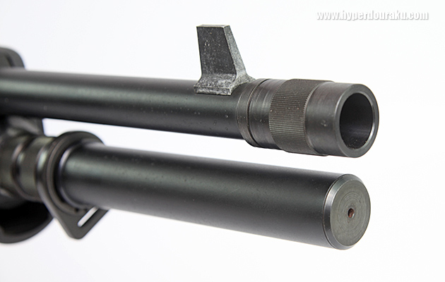 マズルパーツはスチール削り出し。フロントサイトは亜鉛合金だがキリッとエッジが立っており、全体的にカスタムレベルだといえる。