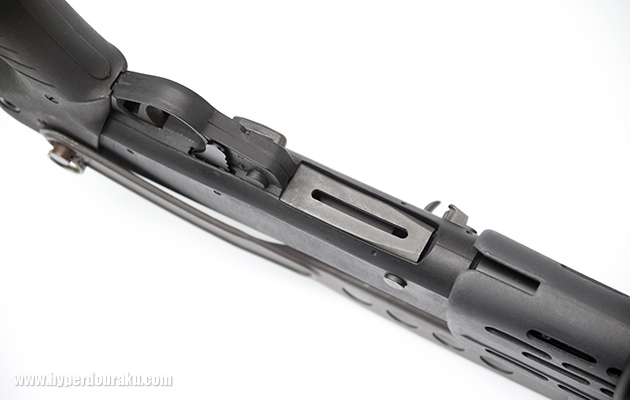 ハンドガードは樹脂製。同時期に競作となったシェリフ製はここがスチールプレス製だったため、唯一、比較されてしまいがちな部分だった。