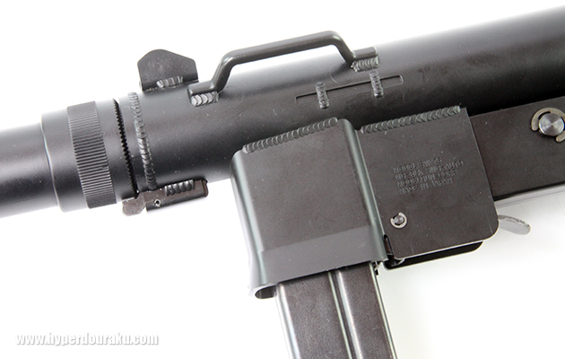 モデルガンのアウター素材をそのまま流用して製作されたM76インターセプター。モデルガンとしての完成度が高かったため全体的にさほど違和感はないが、当時のMGCがいかにフルオートガスガンの開発を急いでいたか、ということがよく分かる製品だ。