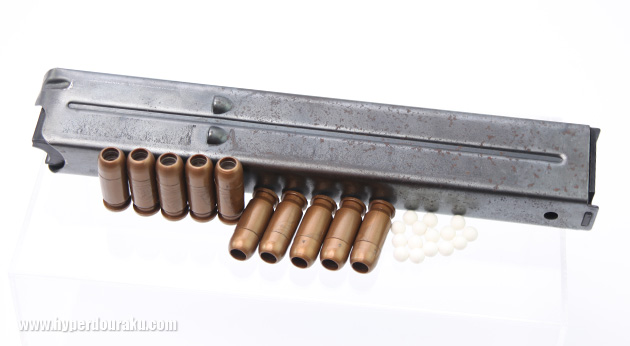 29連スチールプレス製のマガジンを標準装備したエアガンは、当時としては画期的だった。