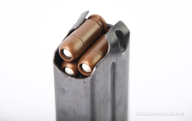 ダブルスタッガード、ダブルフィードのマガジン。連射には少々コツが必要だった。