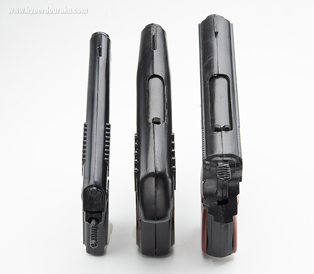マジックコルトの共通仕様として、弾は銃口ではなく、その下のフレームの穴から飛び出す。スライド内部はすべてマガジンということになる。