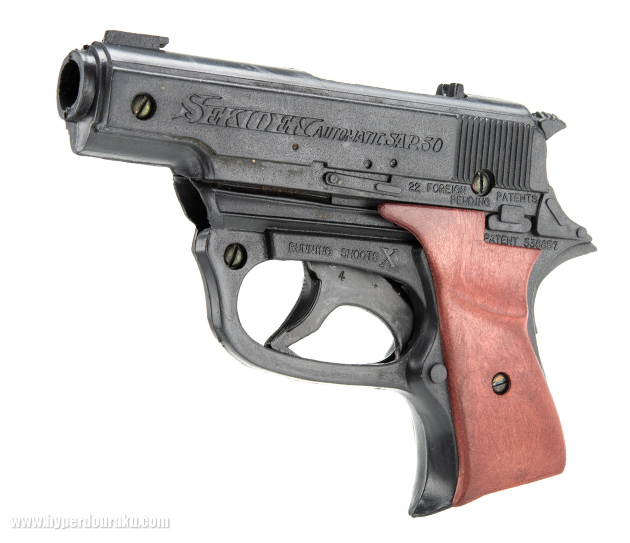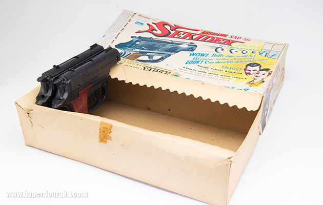 1962年(昭和37年)発売のSAP.50セキデンオートマチック。生産数は驚異の約5000万丁!!!。駄菓子屋以外にも玩具店や、さらにはアメリカ、カナダ、イギリス、ドイツなど、海外にも輸出され、その名を轟かすことになる。