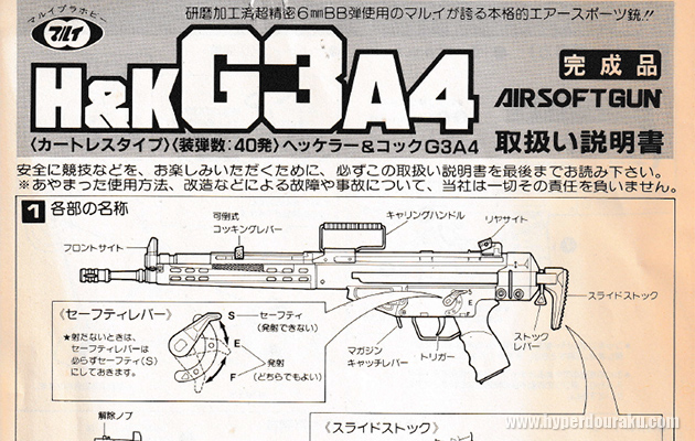重量は1.9kgと非常に軽いので、G3のわりには取り回しやすく、G3 A4でサバゲーしたくなる衝動に駆られる。
